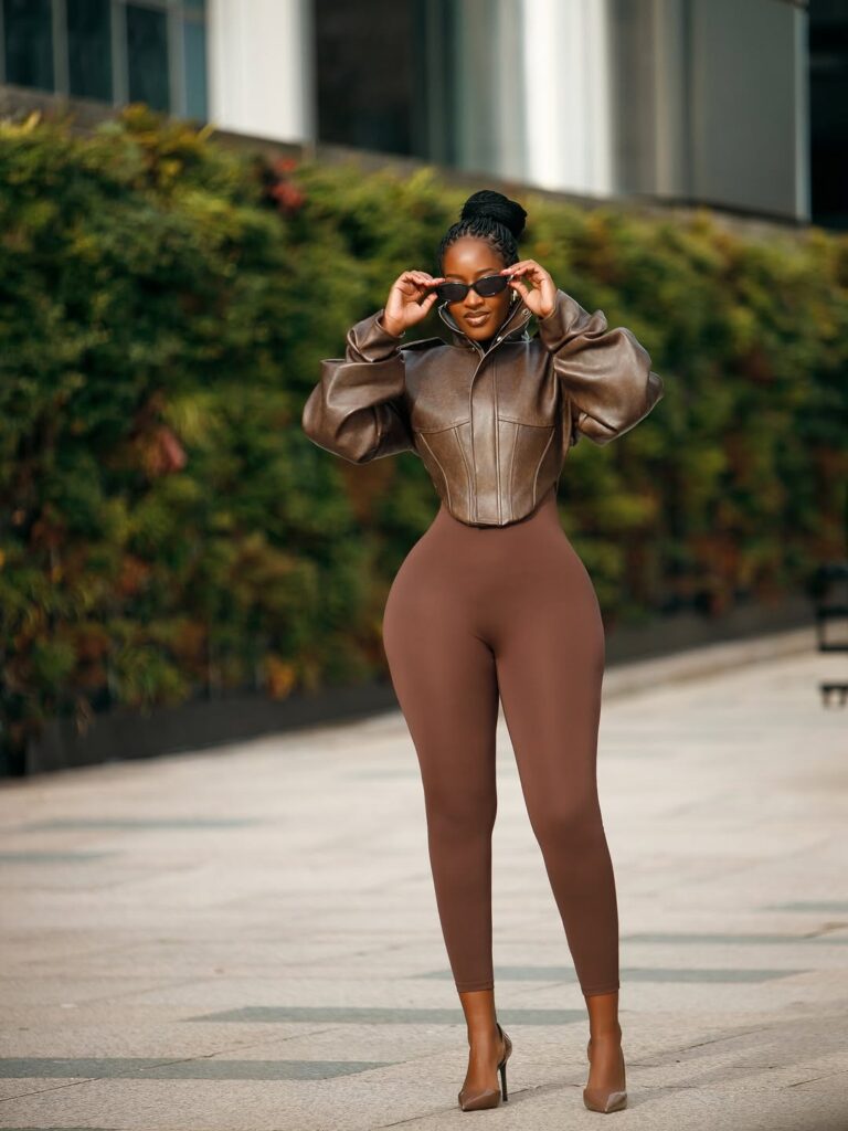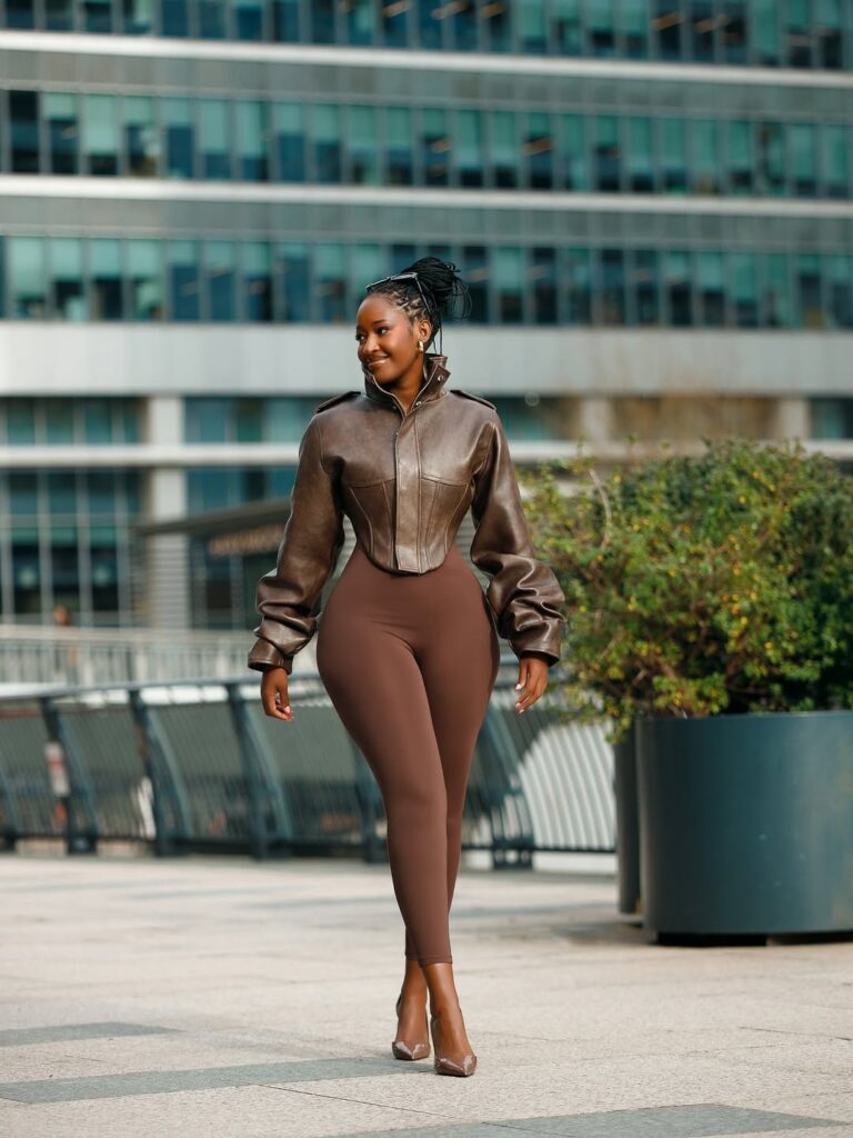 That is the way you put on chocolate tones and make it really feel contemporary, sharp, and highly effective. The fitted brown leggings sit completely and provides a easy, sculpted form that feels clear and assured. On high, the structured leather-based jacket brings that sturdy vogue edge. The snatched waist and daring seams create a pointy silhouette that immediately elevates all the outfi.