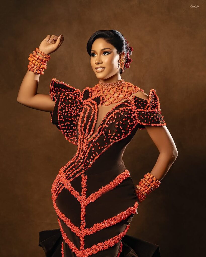 On to the equipment the place the regal theme actually comes into its personal. The coral beads, which the vendor by Fibeads supplies, are stacked generously however tastefully. Consider necklaces, bracelets, and maybe even earrings that echo conventional Igbo symbolism of prosperity and wonder.