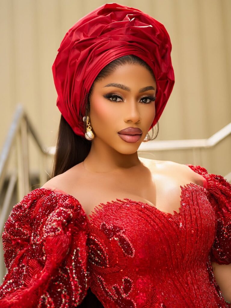 Her make-up is tender however hanging. The graceful pores and skin end, outlined brows, and heat eye make-up steadiness the daring pink outfit completely. The pink gele sits completely and frames her face in a approach that feels robust and chic.