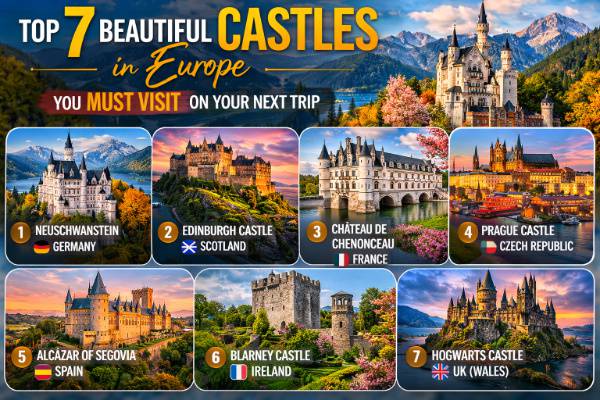 Are you able to step into Europe’s wealthy previous whereas having fun with spectacular views and interesting tales? While you go to the lovely castles in Europe, you’ll be able to witness centuries of royal grandeur, army technique, and architectural innovation. You may journey to the period of the French Renaissance while you uncover the structure of Château de Chambord in France or get pleasure from spectacular metropolis views from Edinburgh Fortress in Scotland.